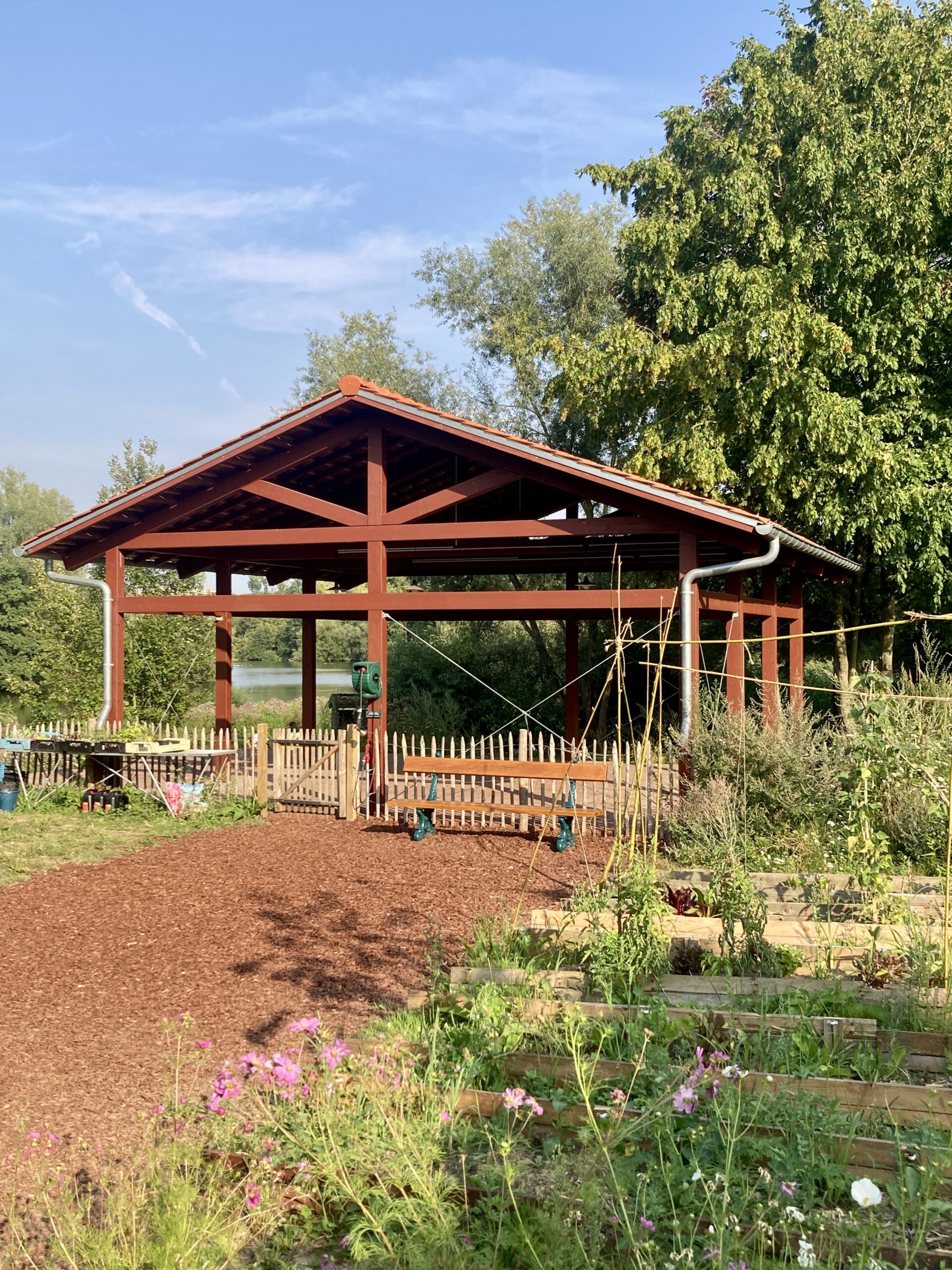 Il n’y a pas de parking visiteur sur place pour les voitures, sauf pour les personnes à mobilité réduite. Si on vient en voiture, il faut se garer dans l’espace public autour des étangs ou bien vers la zone de sports (voir notre page accès).